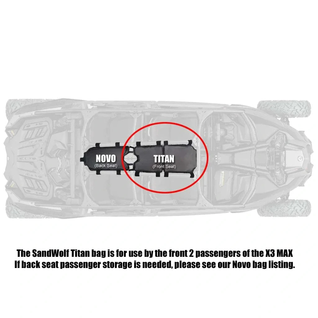 The Titan 2.0 was designed specifically for the Can-Am Maverick X3 MAX 4 seater model. Unlike most other bags for the X3 MAX, our bag utilizes the entire available space between the roll bars giving you much more storage capacity than the competition.