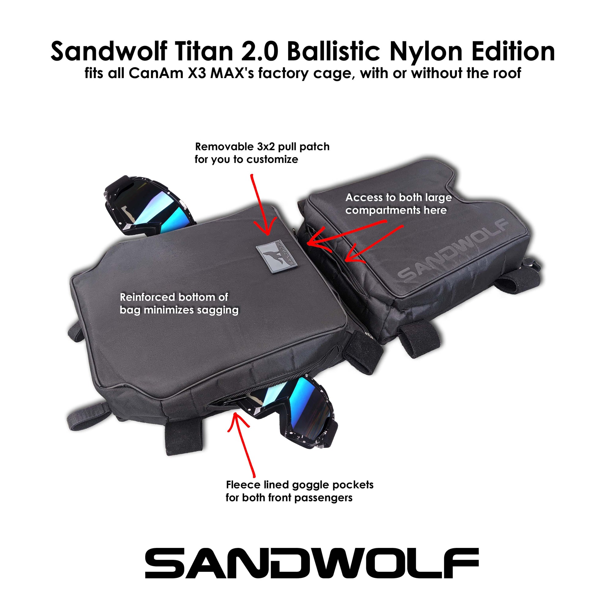 The Sandwolf Titan 2.0 Max Full Size Overhead Bag gets an update with our new Ballistic Nylon material, zipper flys to protect from the elements & a swappable 3x2 inch patch so you can customize to your liking.